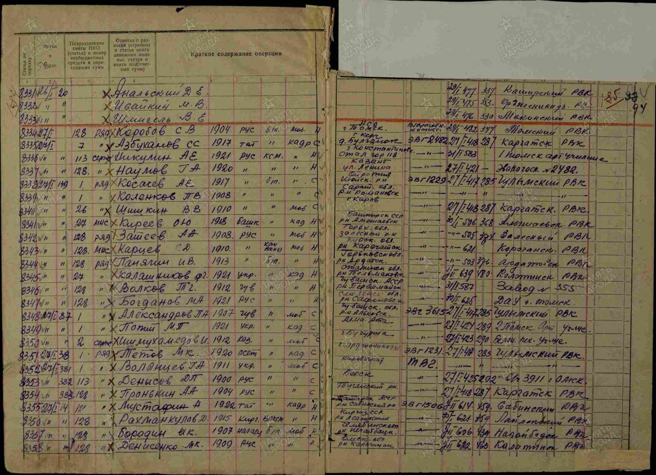 Военно-пересыльный пункт: Томский ВПП Прибыл в часть: 27.01.1942