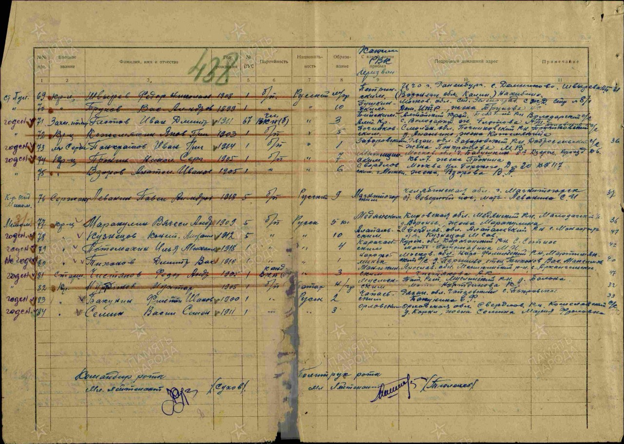 Военно-пересыльный пункт: 202 зсп Выбытие из воинской части: Между 16.07.1942 и 31.07.1942