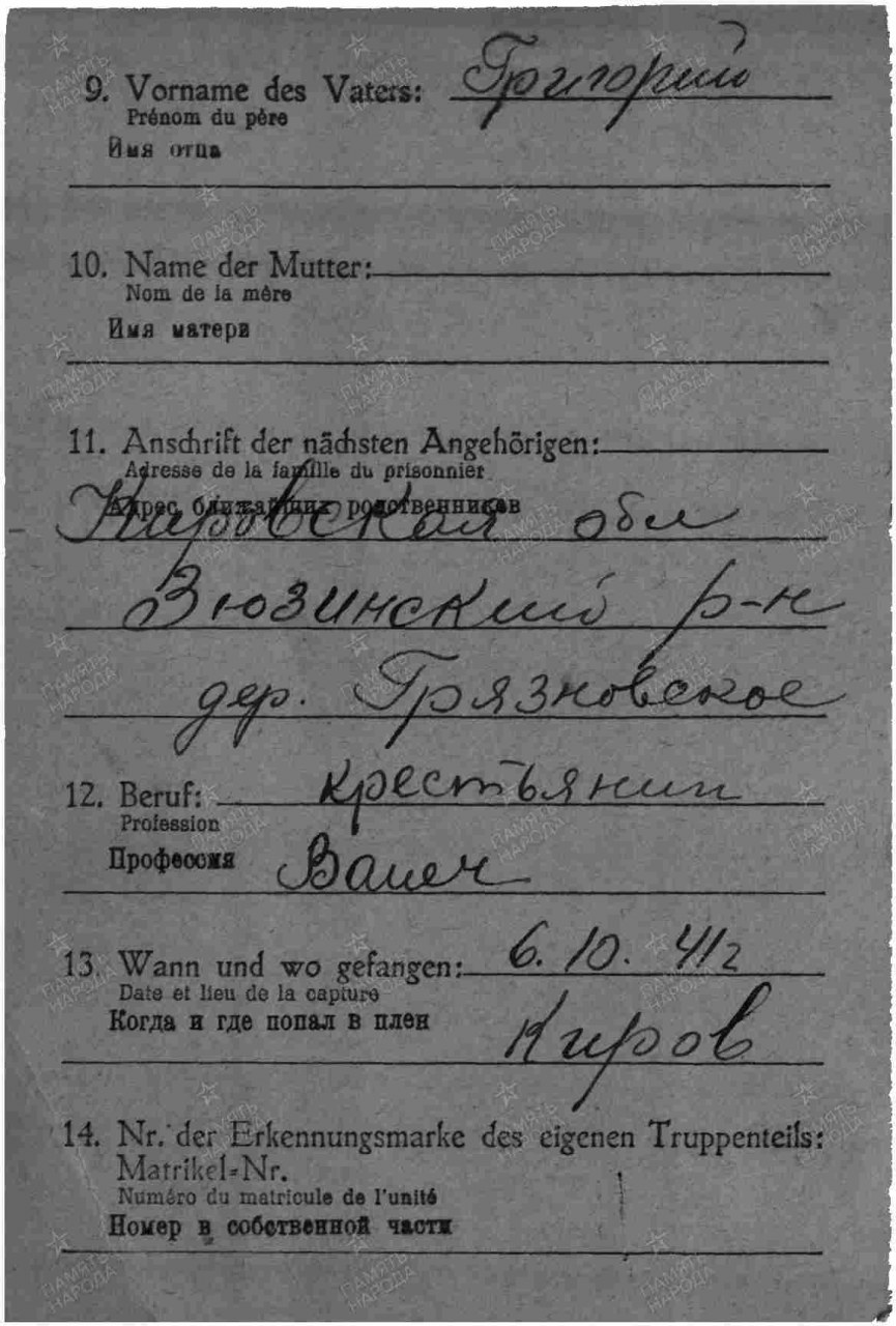 | Родился | 06.09.1912 | деревня Грязновская (Афанасьевский район, Кировская область) - ныне не существует | |
