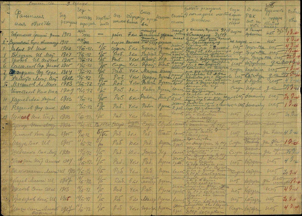 Дата призыва: 16.07.1942 Хатырчинский РВК, Узбекская ССР, Самаркандская обл., Хатырчинский р-н