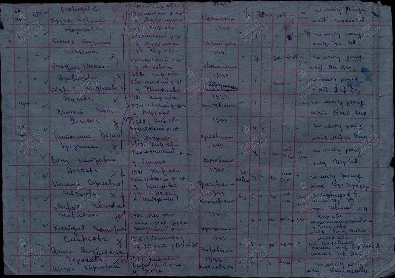 | призвана Ждановским РВК г. Кирова | 1943 | город Киров (Вятка, Хлынов) (Город Киров, Кировская область) - существующий н.п. | |