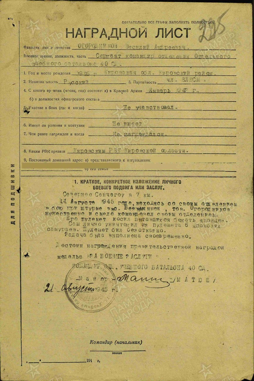 | Родился | 24.04.1925 | деревня Марковщина (Игнатия Огородникова) (Кирово-Чепецкий район, Кировская область) - существующий н.п. | |