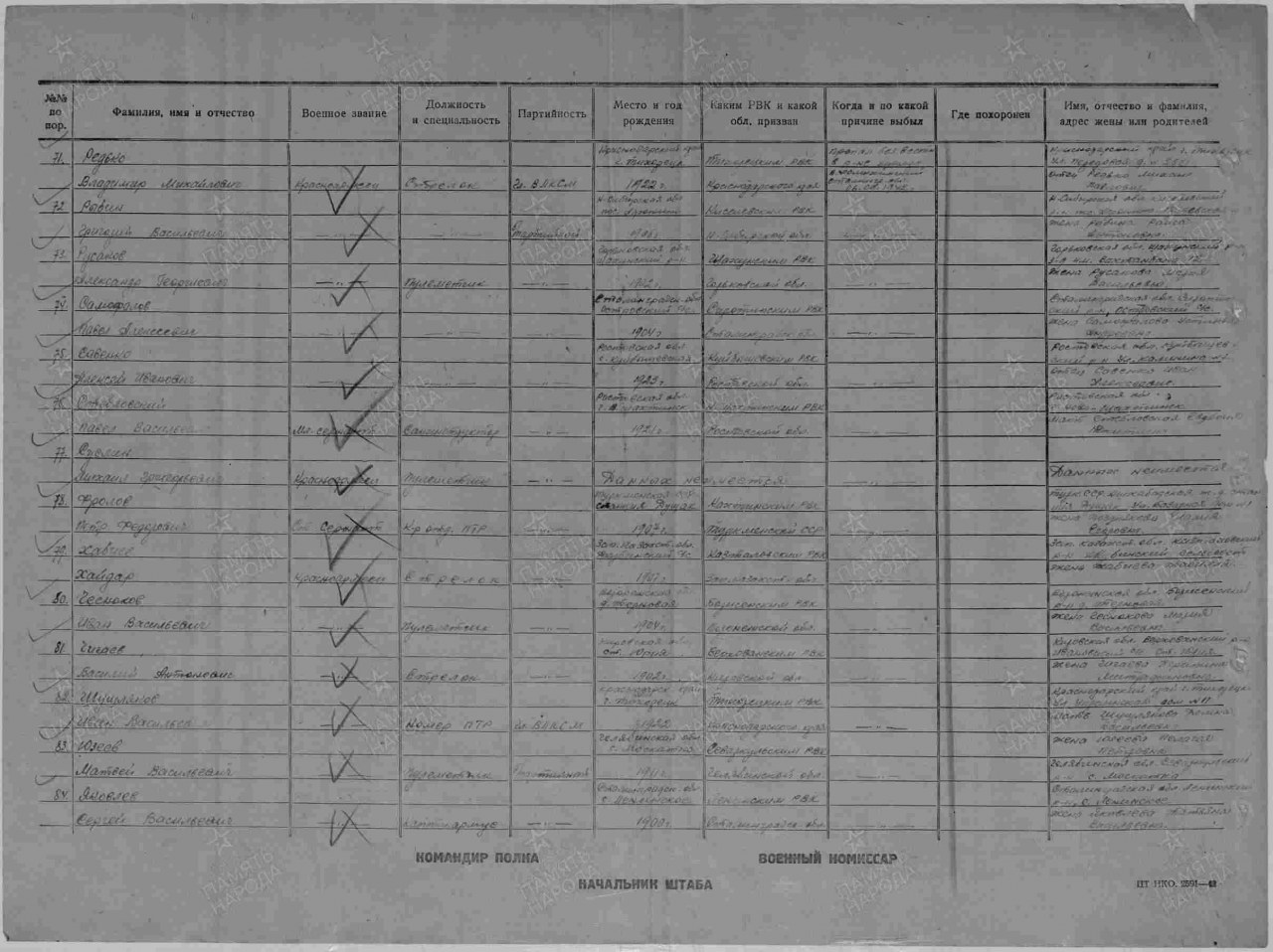 Списки воинов, погибших и пропавших без вести на фронтах Великой Отечественной войны
