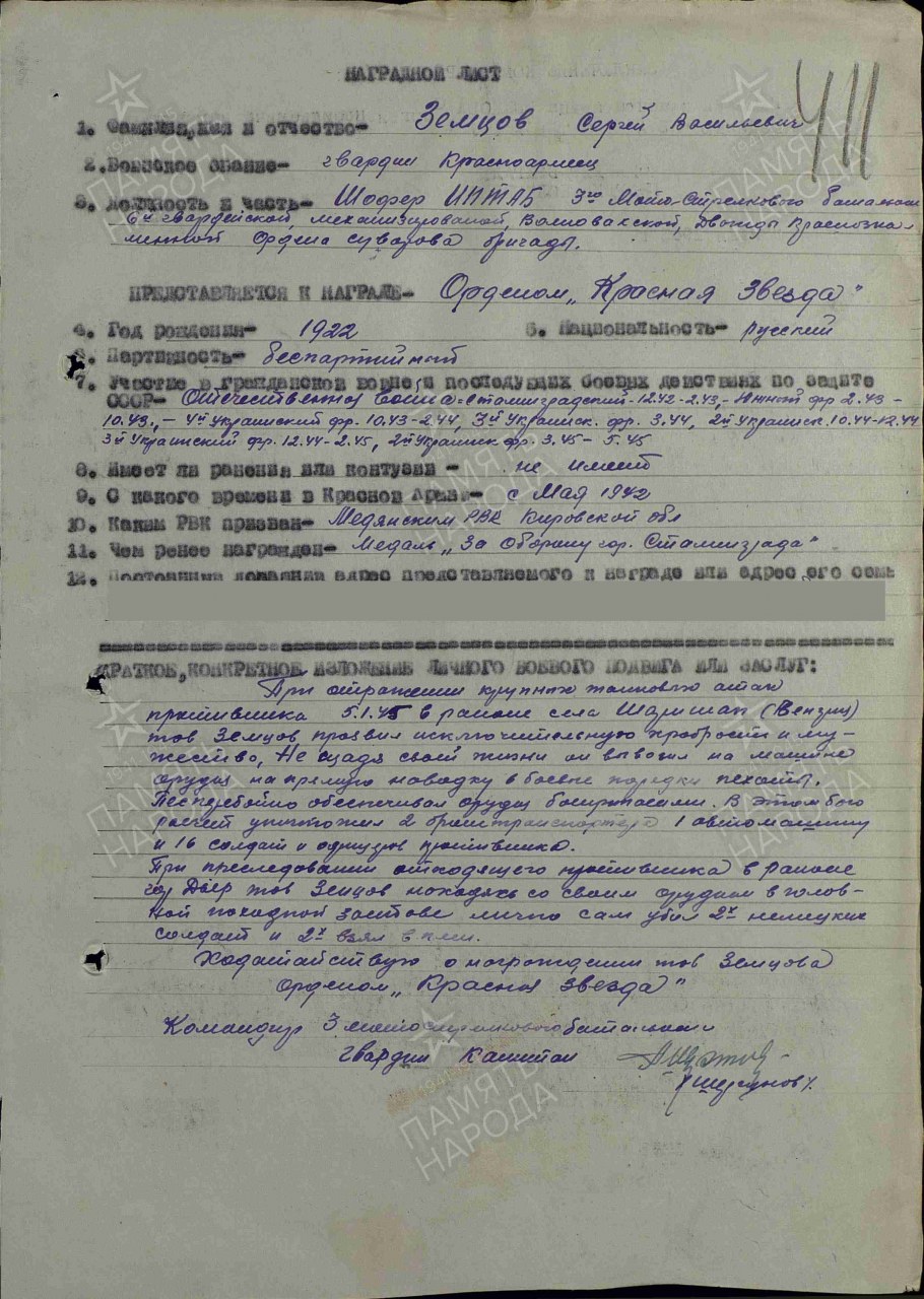 Приказ подразделения №: 196 от: 06.11.1945 Издан: 6 гв. мех. полк