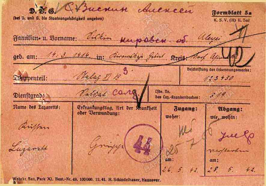 Дата выбытия: 28.05.1942