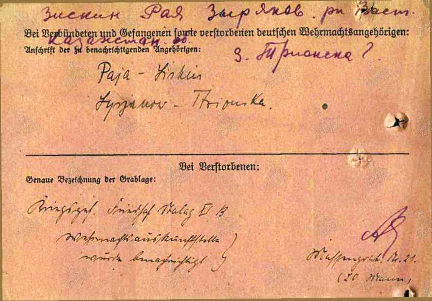 | Погиб | 28.05.1942 | Stalag XI-B Fallingbostel | Stalag XI-B Fallingbostel Бад-Фаллингбостель (нем. Bad Fallingbostel) — город в Германии, районный центр, курорт, расположен в земле Нижняя Саксония. Входит в состав района Зольтау-Фаллингбостель. |