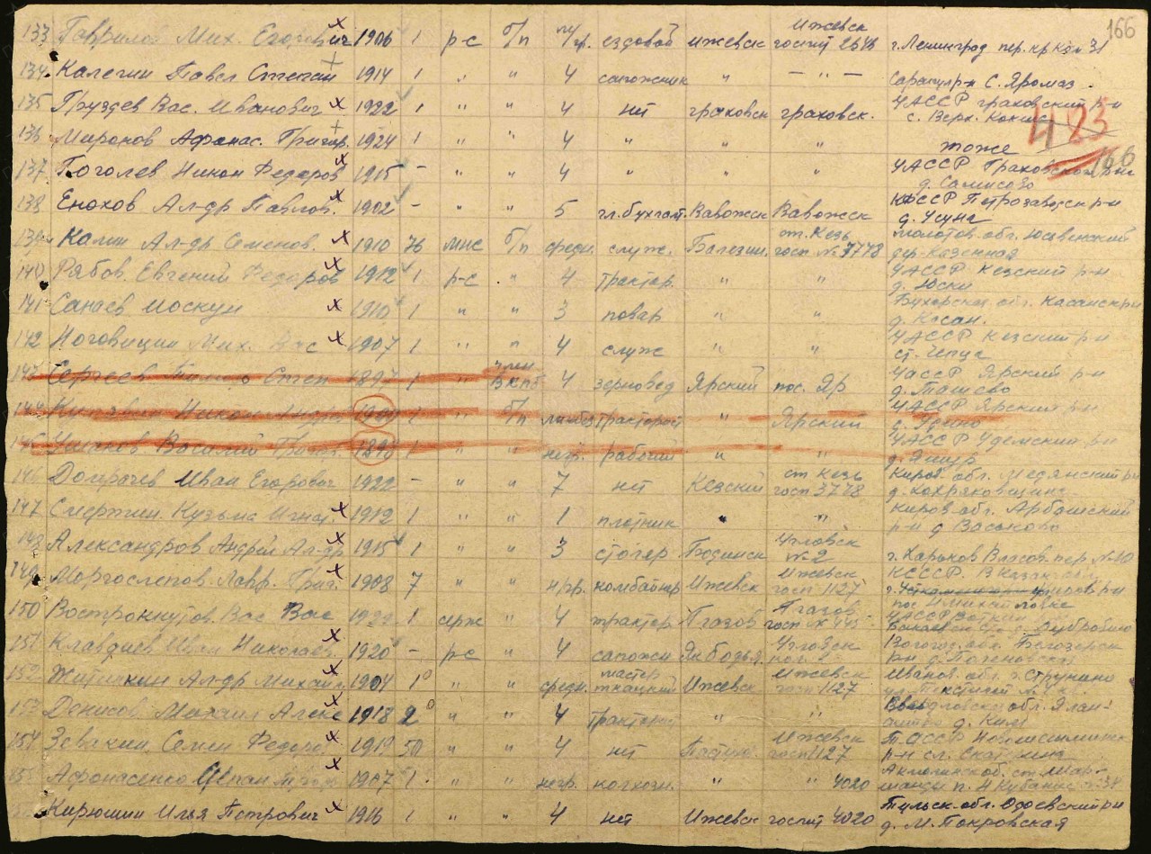 Военно-пересыльный пункт: Ижевский ВПП Выбытие из воинской части: 23.03.1943