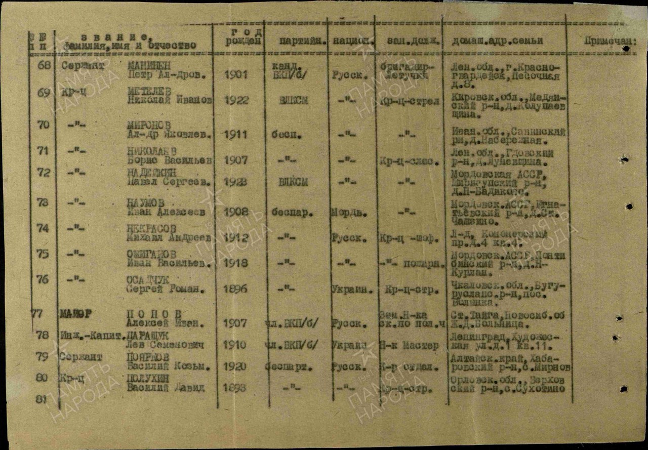 Военно-пересыльный пункт: 36 зсбр Выбытие из воинской части: 06.07.1942
