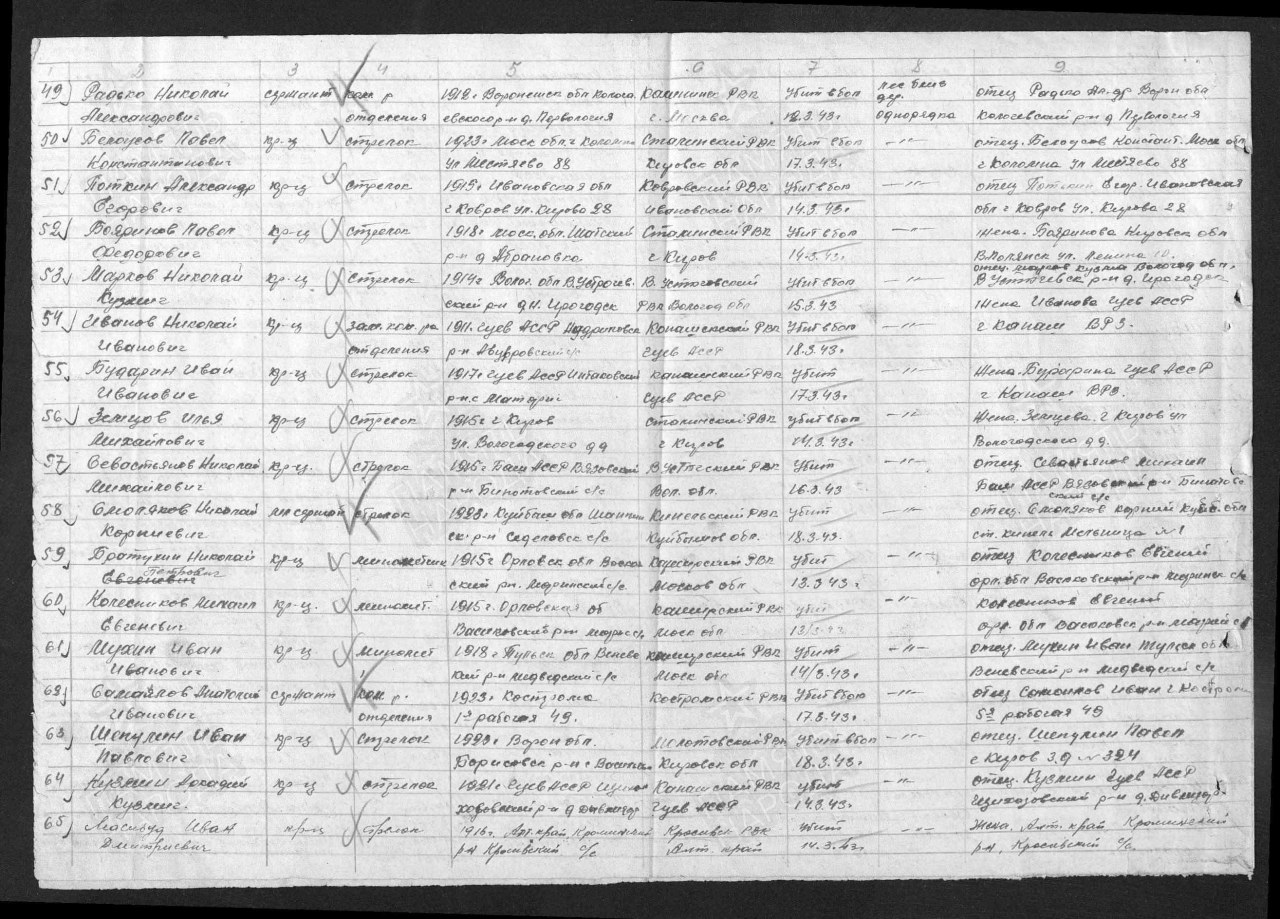 | 4315240014 | ЗЕМЦОВ Илья Михайлович | 1915 г. р., уроженец бывш. д. Медвега М-Долговского с/с Верховинского р-на, красноармеец, стрелок 22 вдгсп, 9 вд гв. дивизии, мобилизован Сталинским РВК. Погиб 14.03.1944 г. Захоронен в братской могиле у д. Однорядка Старорусского р-на Новгородской обл. | Кировская область, Киров |