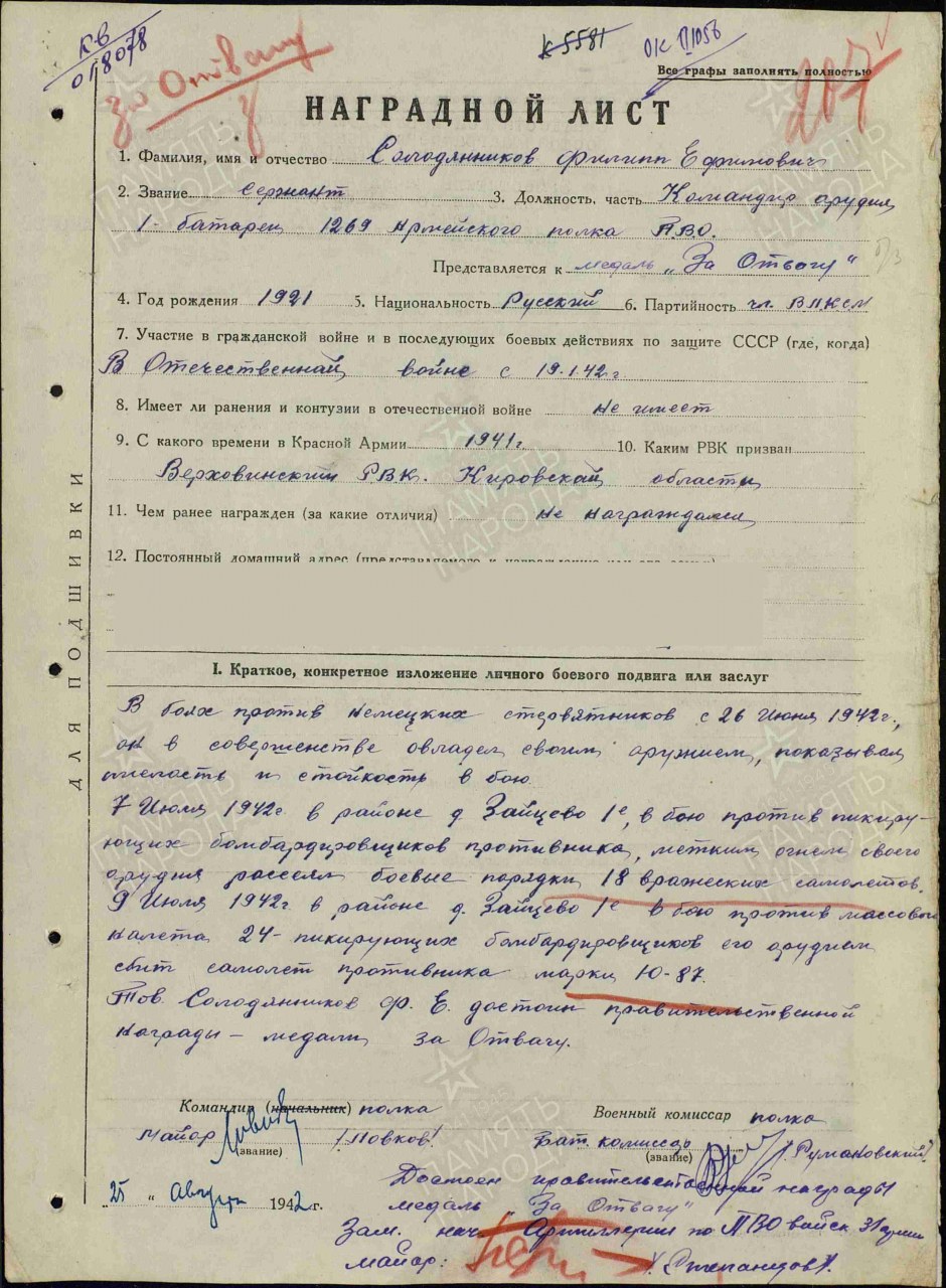 Дата призыва: Верховинский РВК, Кировская обл., Верховинский р-н