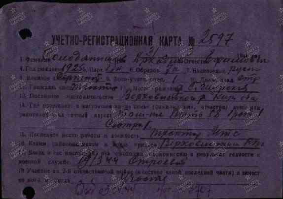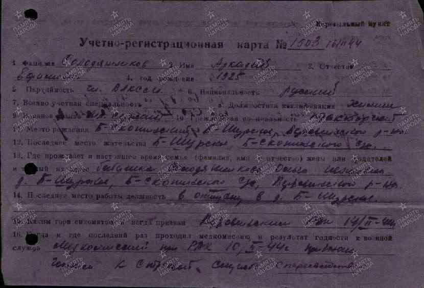 Военно-пересыльный пункт: Кировский ВПП Выбытие из воинской части: 16.02.1944