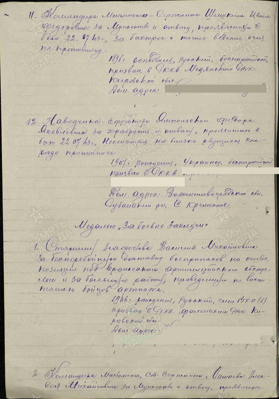 Место призыва: Медянский РВК, Кировская обл., Медянский р-н