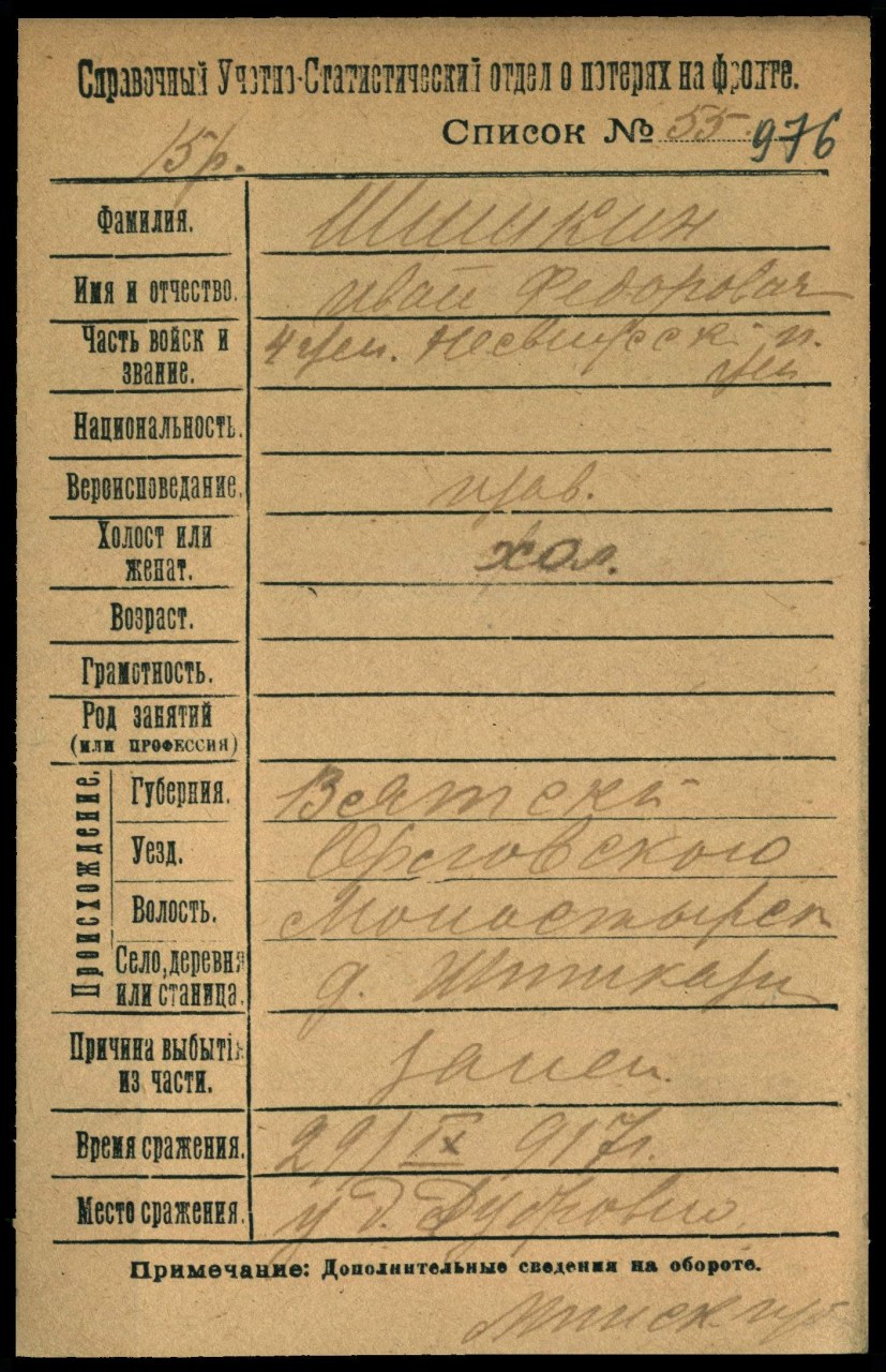 Дата выбытия 29.09.1917