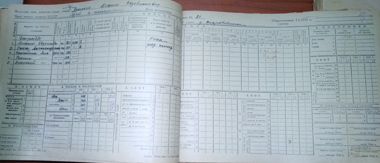 Родственники: жена Ольга Александровна, проживал п. Вахруши, последнее письмо 22.08.1942 г без адреса.