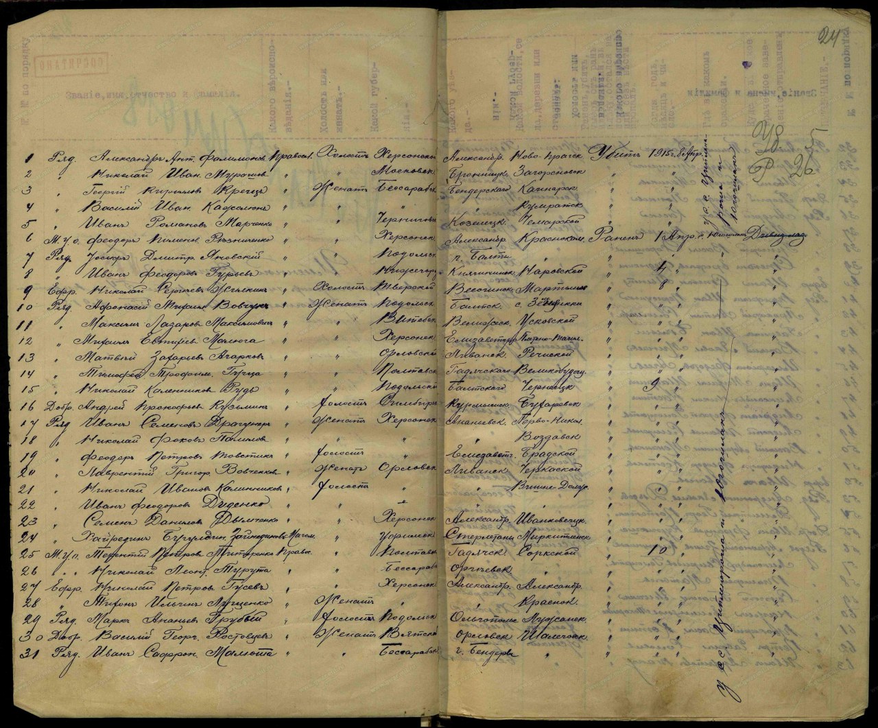 | ранен - контужен | 10.04.1915 | 54-й пехотный Минский полк Место рождения Вятская губ., Орловский уезд, Шалеговская вол. Причина выбытия ранен/контужен Место выбытия дивизионный лазарет Дата события 10.04.1915 Место события с. Ципленороша, с. Югошлак Тип документа Именные списки потерь Российский Государственный Военно-исторический архив Фонд №16196, Особое делопроизводство по сбору и регистрации сведений о выбывших за смертью или за ранами, а также пропавших без вести воинских чинах, действующих против неприятельских армий (1914 - 1918) Опись №1, Именные списки потерь солдат и офицеров 1 мировой войны 1914-1918 гг. (по полкам и бригадам) Дело Именные списки 54 пехотного Минского полка о потерях солдат на фронтах Документ №164058, Именной список потерь нижних чинов 2 роты 54 пехотного Минского полка в апреле месяце 1915 г., Автор: 54-й пехотный Минский полк | |