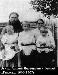 | 1919797 | Верещагин Азарий Николаевич | Род. 1871, Кировская обл., Нолинский р-н, с. Васильевское Национальность: русский Проживание: Богородский р-н, с. Караул Караульского с/с Занятие: священник церкви с. Караул. | Обвинение: по ст. 58 п. 10 УК РСФСР Осуждение: 05.10.1933, особая тройка при ПП ОГПУ Нижегородского края Приговор: 3 года ИТЛ условно. | Дата: 29.09.1989 | Книга Памяти Кировской обл. (тт. 1-4) |