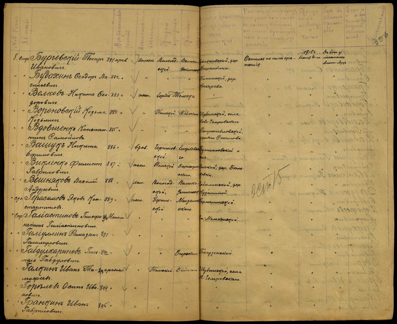 | Плен | Июль 1915 | Августово | Воинская часть 49-й Сибирский стрелковый полк Лагерь Фридрихсфельд у Везеля Место события Августово Тип документа Карточки военнопленных Архив Российский Государственный Военно-исторический архив Фонд Картотека бюро учета потерь в Первой мировой войне (пленные) Шкаф без номера Ящик 7056-Б |