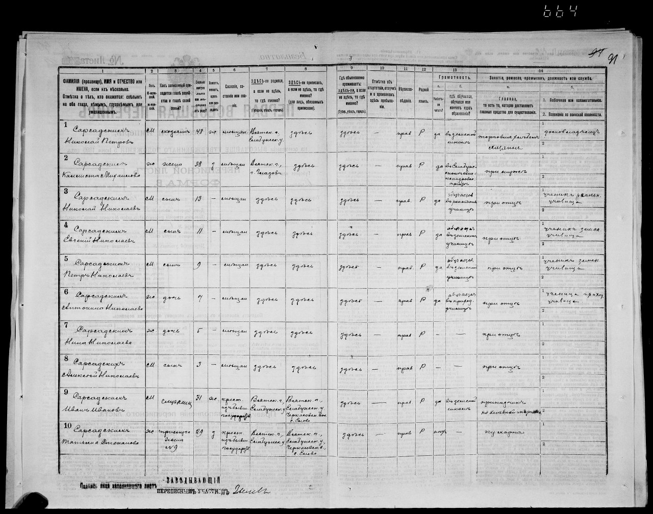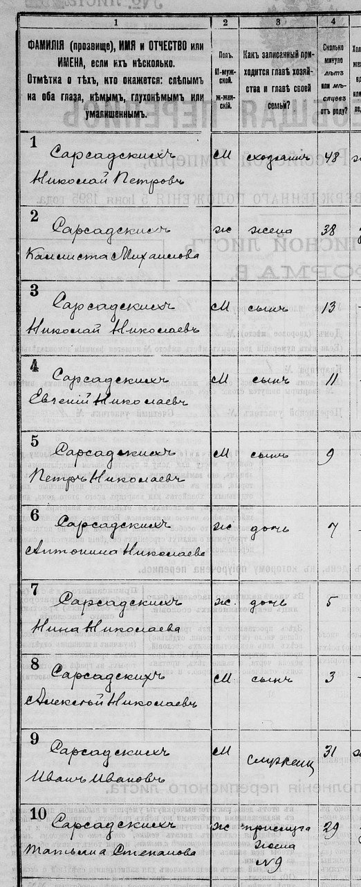 Перепись 1897 года, г. Сарапул, семья Сарсадских