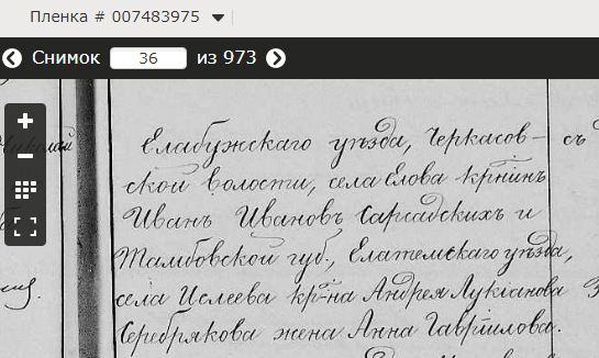 Восприемники: Елабужскаго уезда, Черкасовской волости, села Елова крестьянин Иван Иванов Сарсадских и Тамбовской губ., Елатемскаго уезда, села Ислеева крестьянина Андрея Лукианова Серебрякова жена Анна Гавриилова