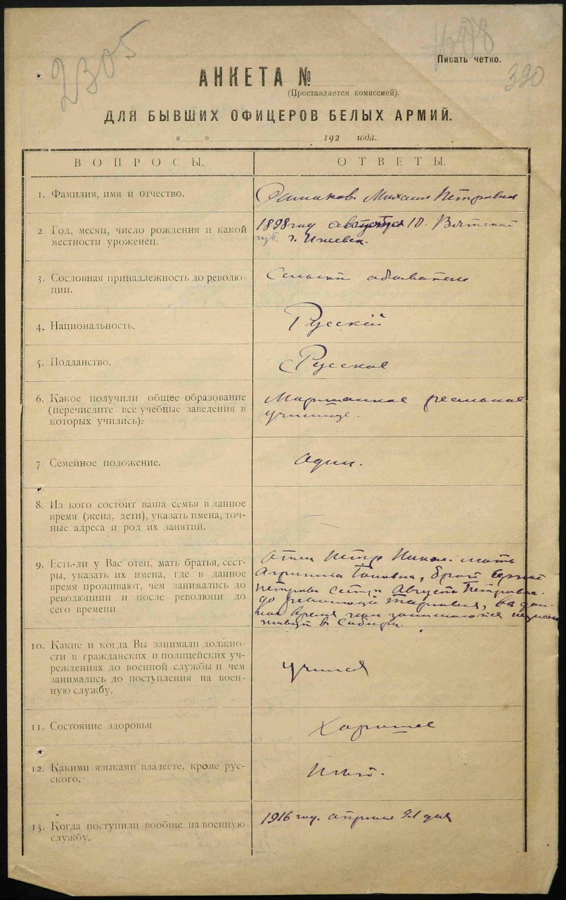 | Родился | 08.09.1898 юл/ст. | город Ижевск (Город Ижевск, Удмуртская Республика) - существующий н.п. | г. Ижевск, Вятская губерния, https://gwar.mil.ru |