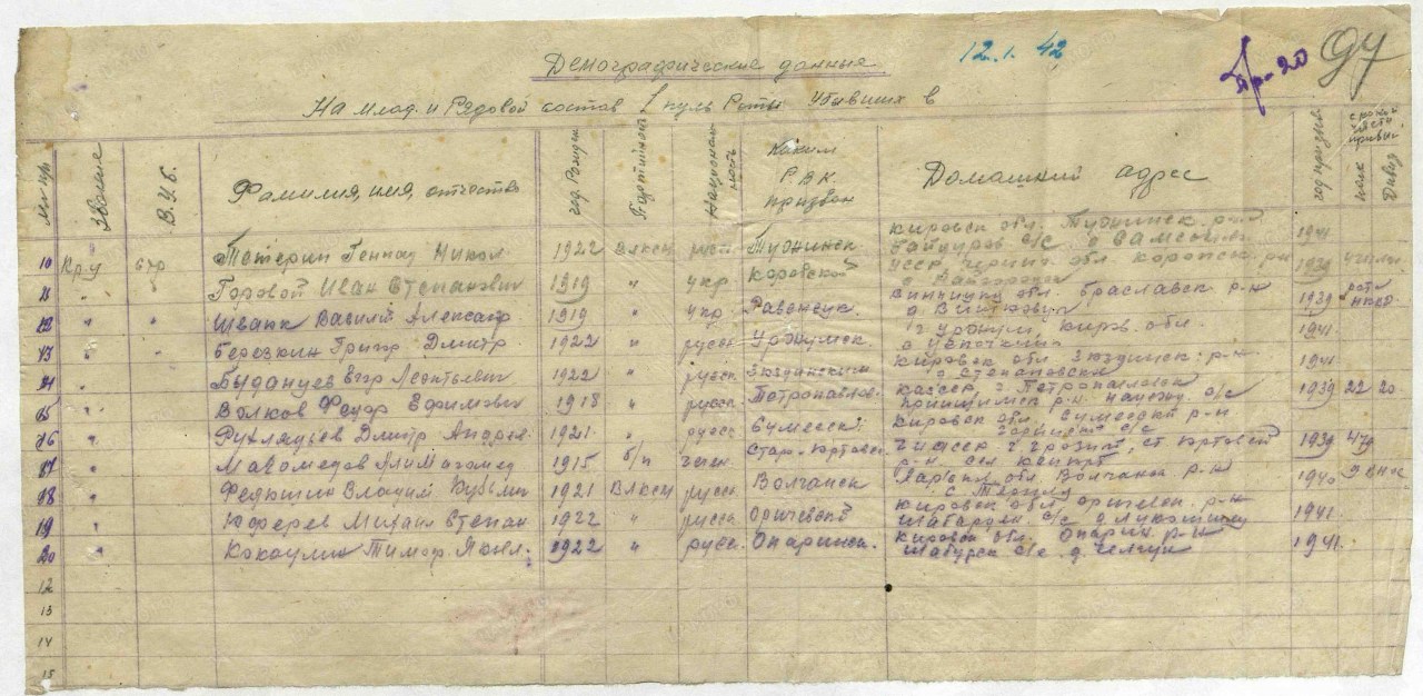 | Участие в ВОв | 20.12.1941 - 1945 | ||