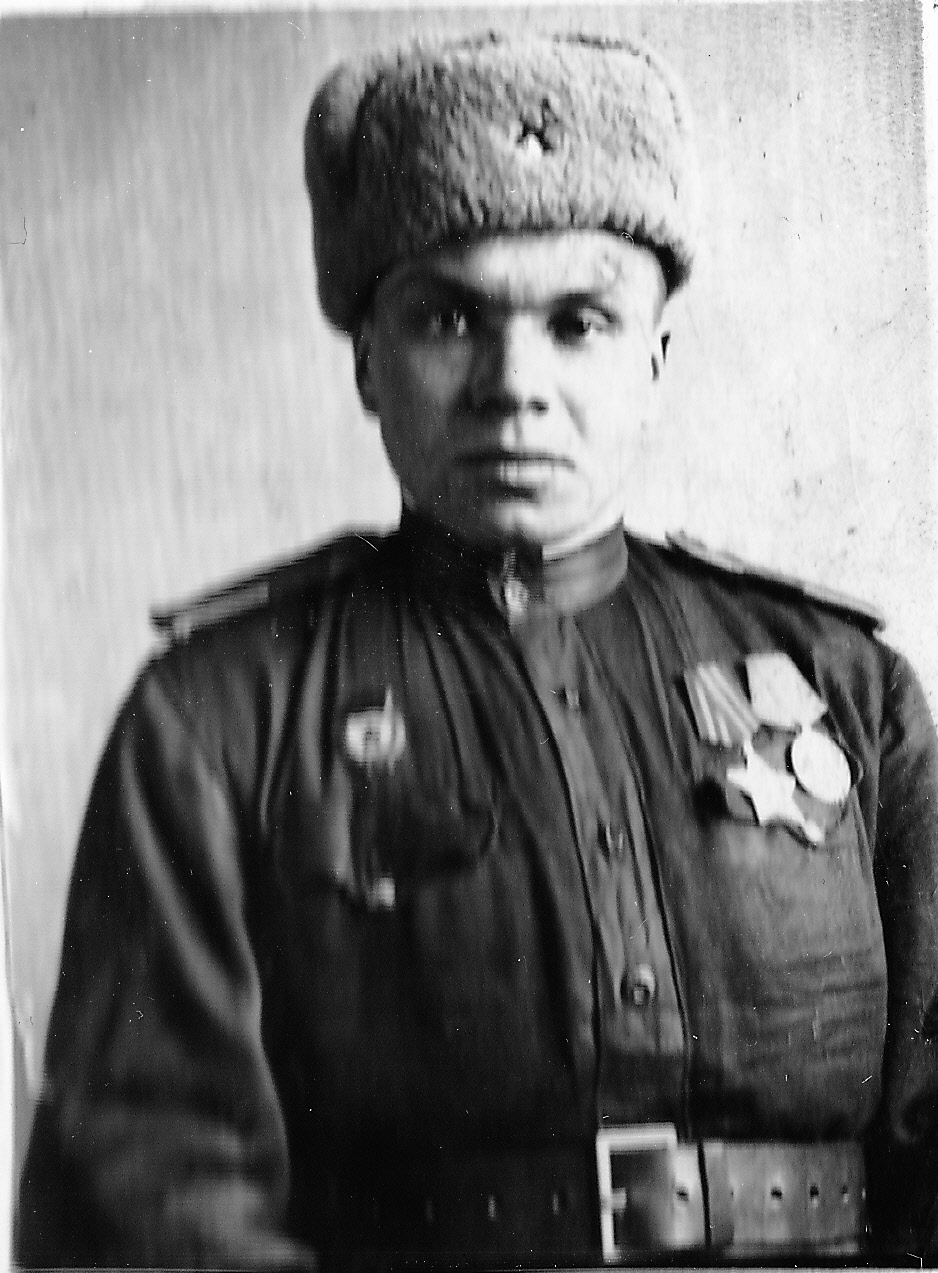 Из альбома: «Я на фронт попал в 1942 году. Был на Северо-Западном фронте. Потом в 1944 году попал на 2-й Украинский. При форсировании Днепра, овладением города Бельцы и выходе на государственную границу 6 марта 1944 года была объявлена благодарность. После этого скоро было присвоено звание старшего сержанта, а в августе 1944 года была объявлена благодарность.