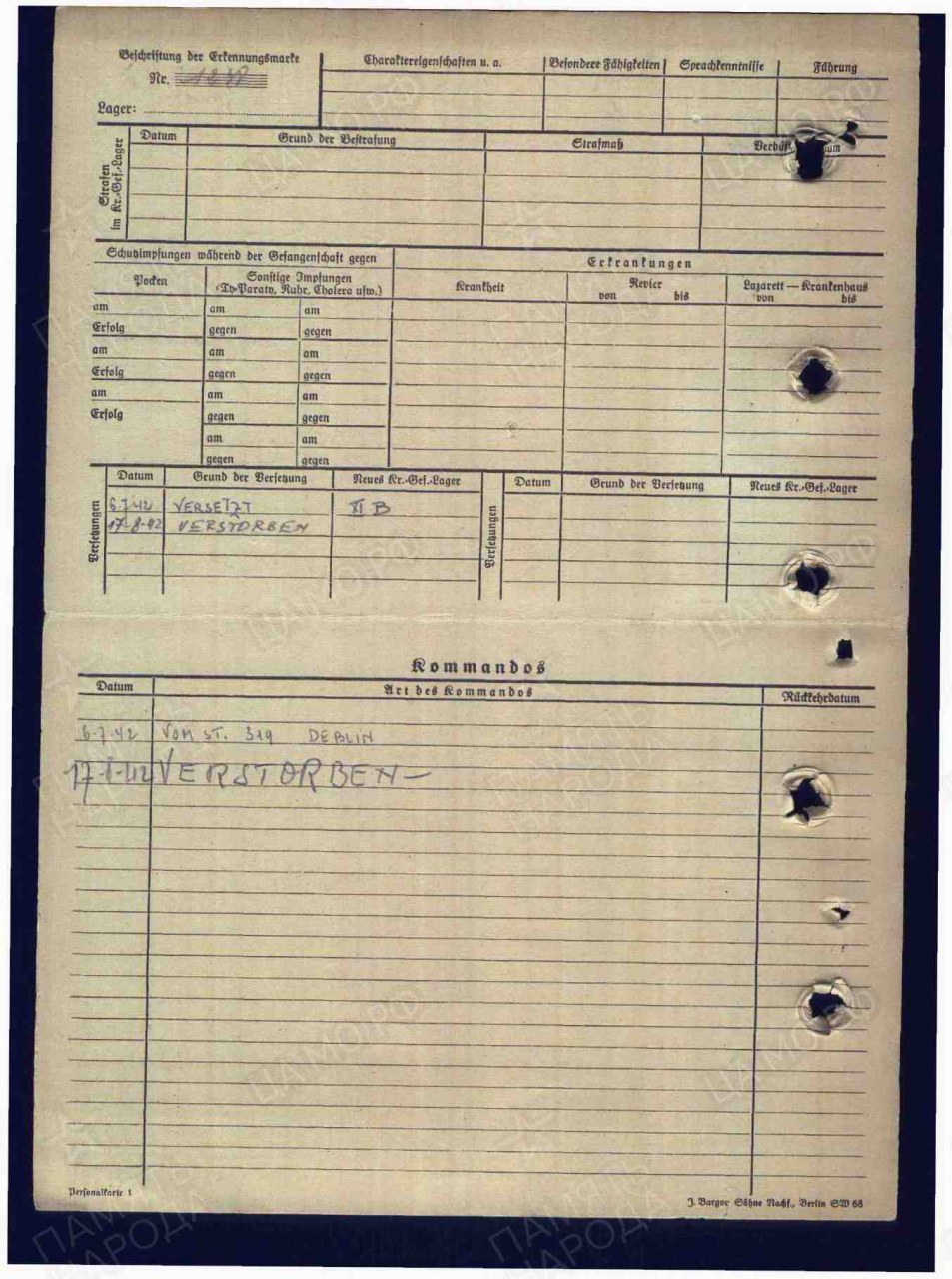 | Умер | 17.08.1942 | Умер в немецком плену |