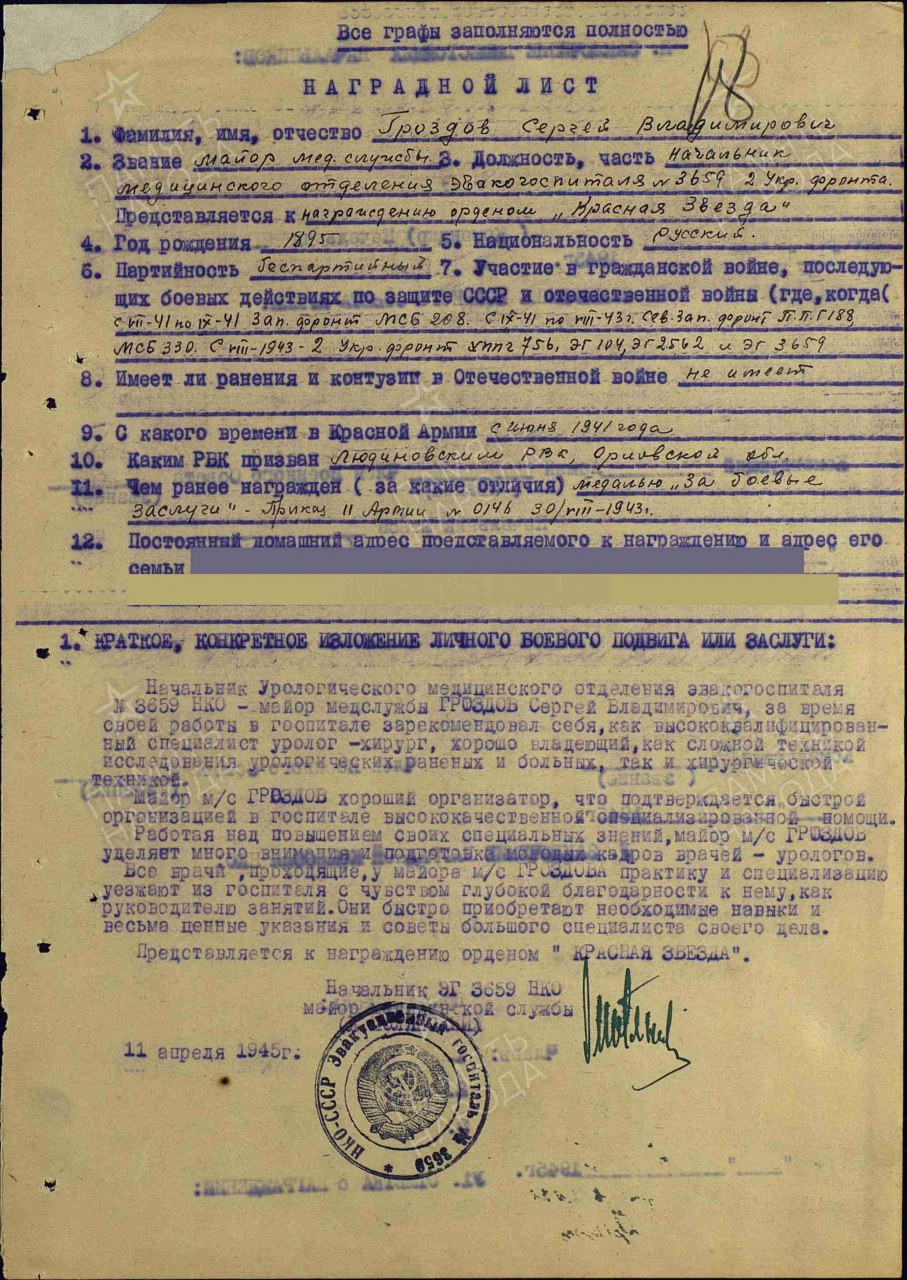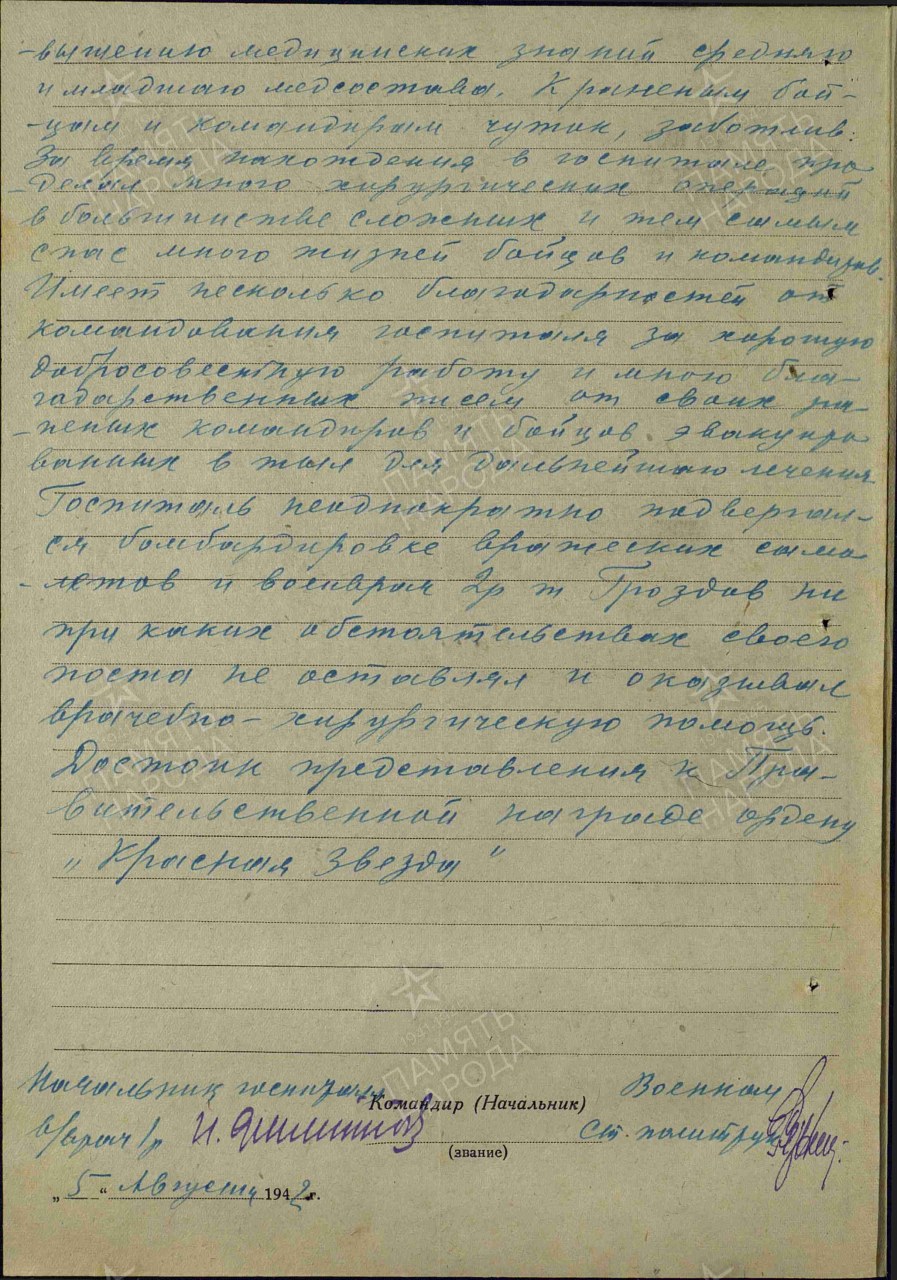 Воинское звание: майор мед. сл.