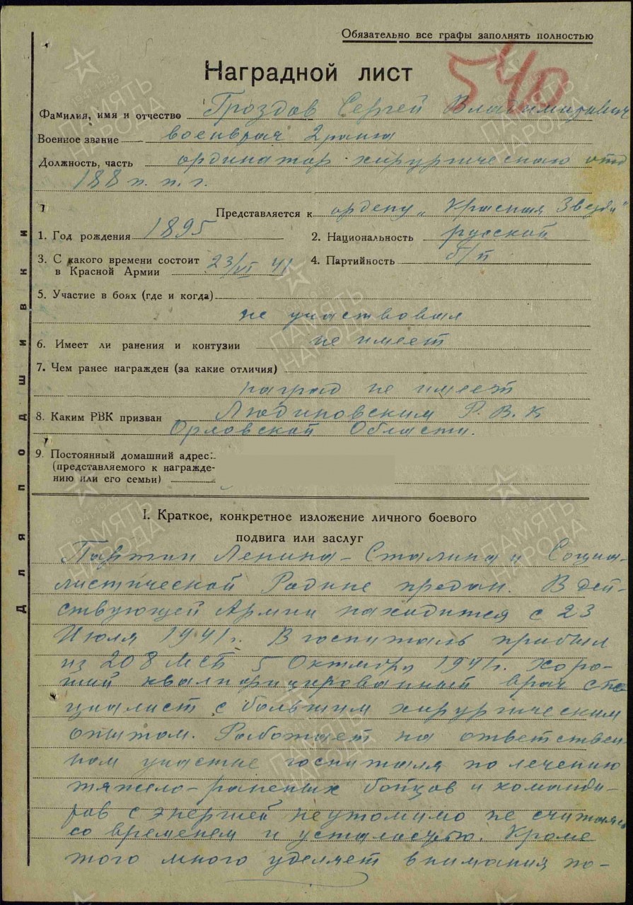 Дата поступления на службу: 23.06.1941