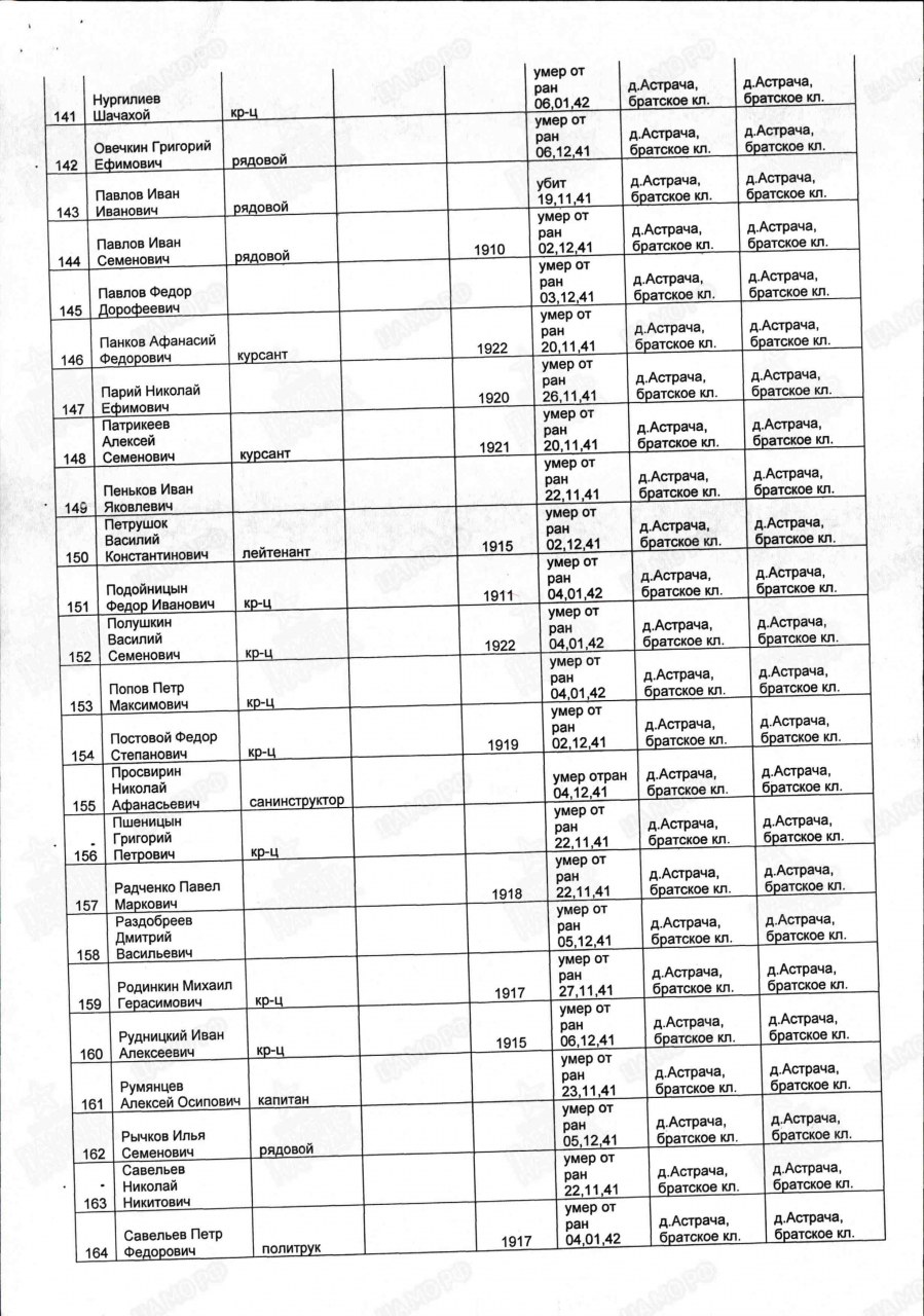 Списки воинов, погибших и пропавших без вести на фронтах Великой Отечественной войны
