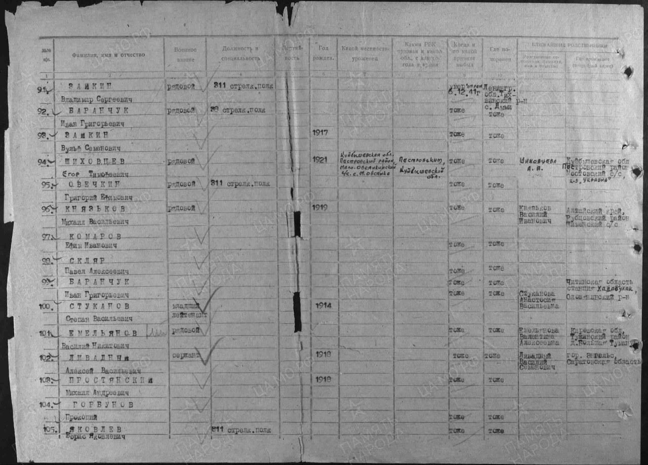 | 4308399013 | ОВЕЧКИН Григорий Ефимович | 1900 г. р., д. Чучкалята Адышевского с/с, красноармеец, рядовой, 433 п-я, 13 подразд., в январе 1942 г. пропал без вести. | Кировская область, Оричевский район |