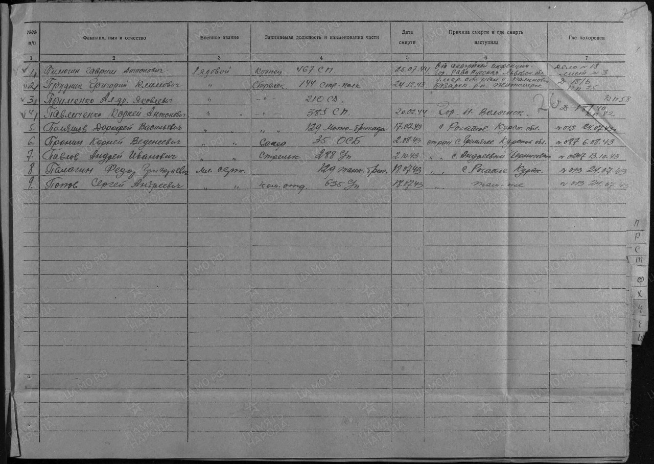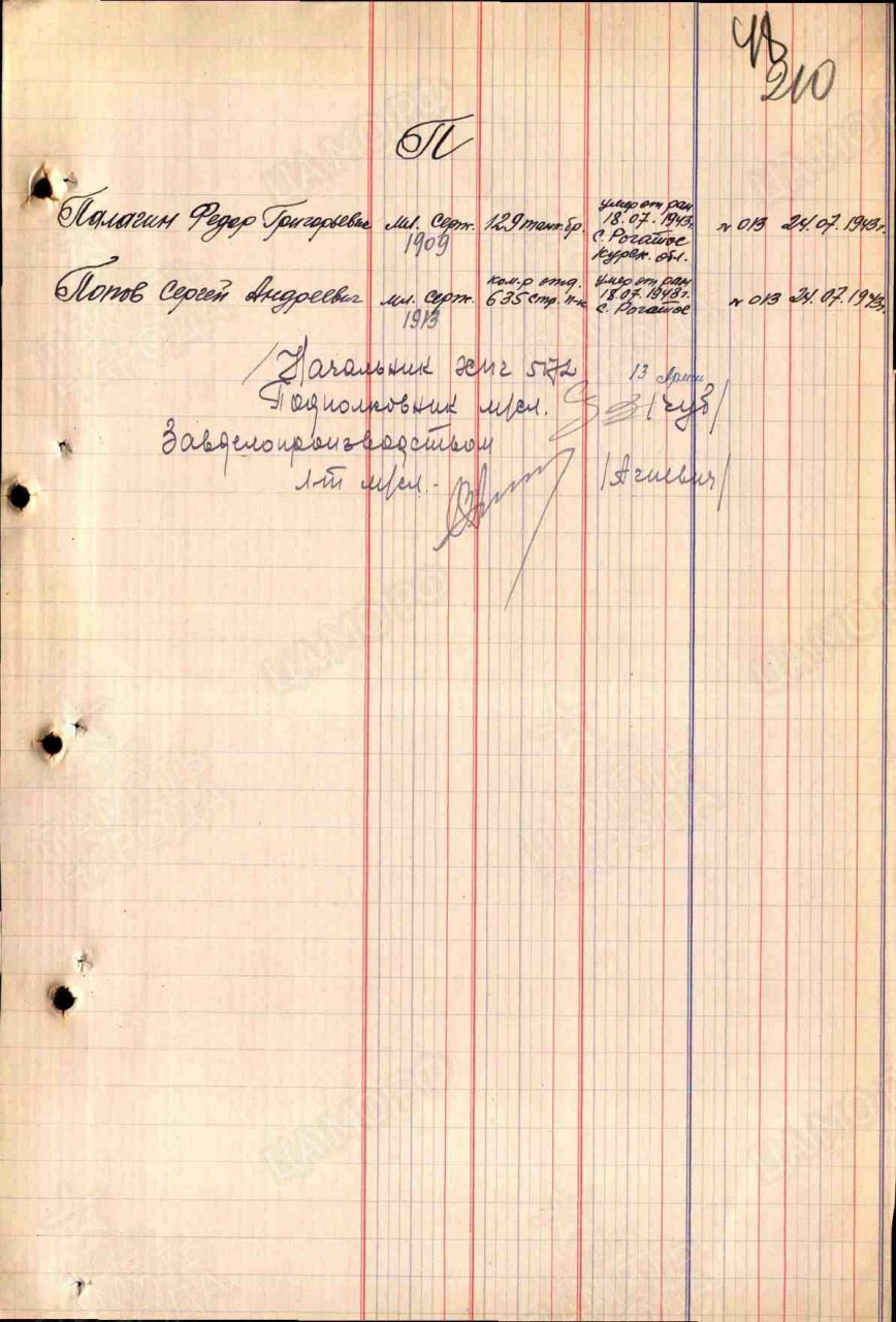 (Источники информации: Алфавитная книга призванных по мобилизации в период Великой Отечественной войны Оричевским РВК Кировской области на «П», листы 25 об, 26, № 426; Похозяйственная книга за 1946 — 1947 — 1948 годы д. Зайцы, Березник (Ф. 37, оп. 1, д. 16); ЦГАКО. Ф. 237, оп. 226, д. 1194; ЦАМО. Фонд: 58. Опись: 18001, 977525, А-83627. Дело: 825, 211, 7340)