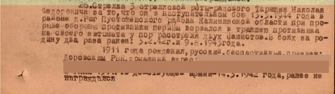 Из наградного документа. Медаль «За отвагу» 08.06.1944. (ЦАМО 33-690155-3418)