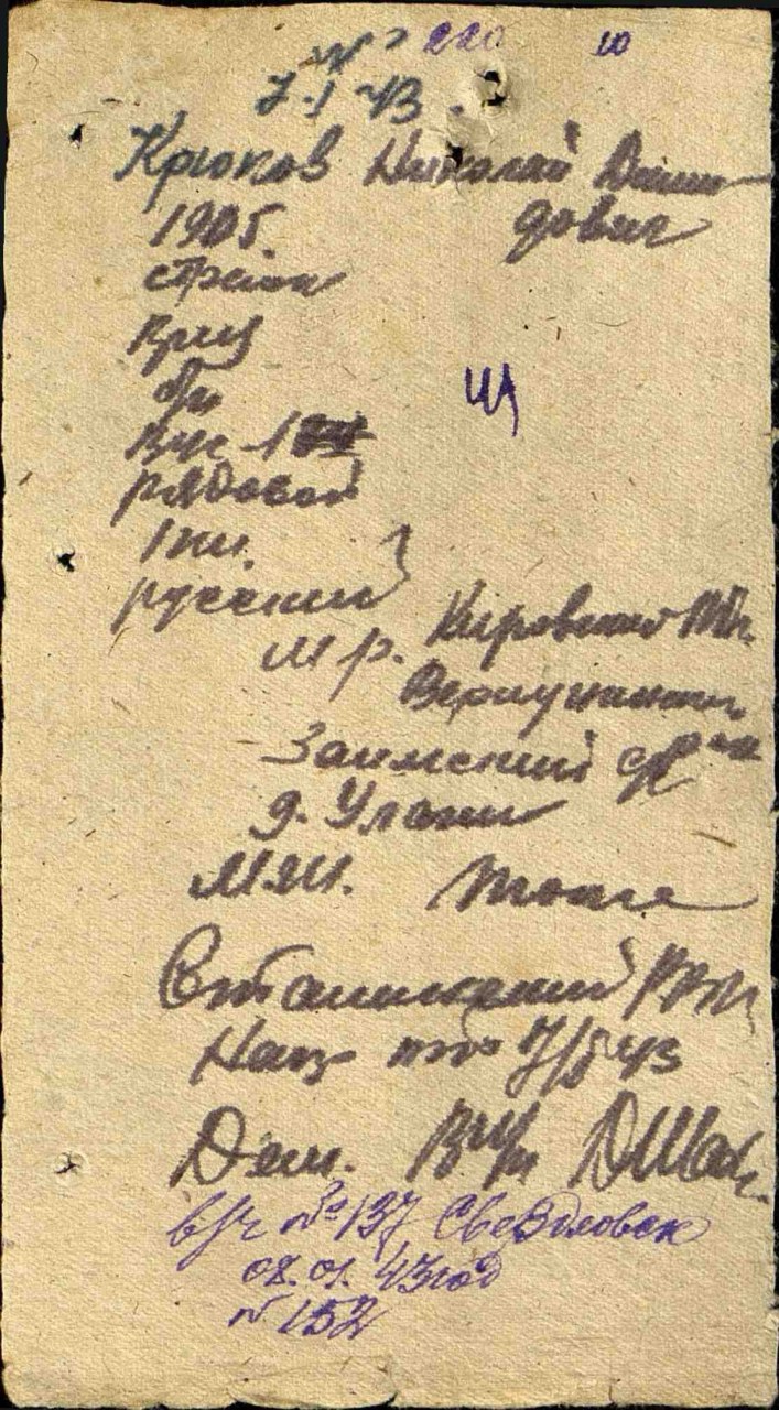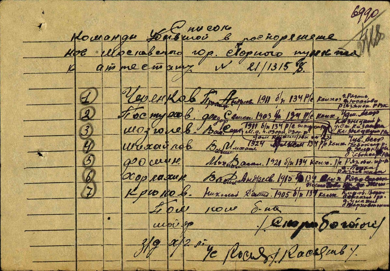 | призыв Верховинский РВК. Кировской области | Февраль 1942 | село Верховино (Юрьянский район, Кировская область) - существующий н.п. | |