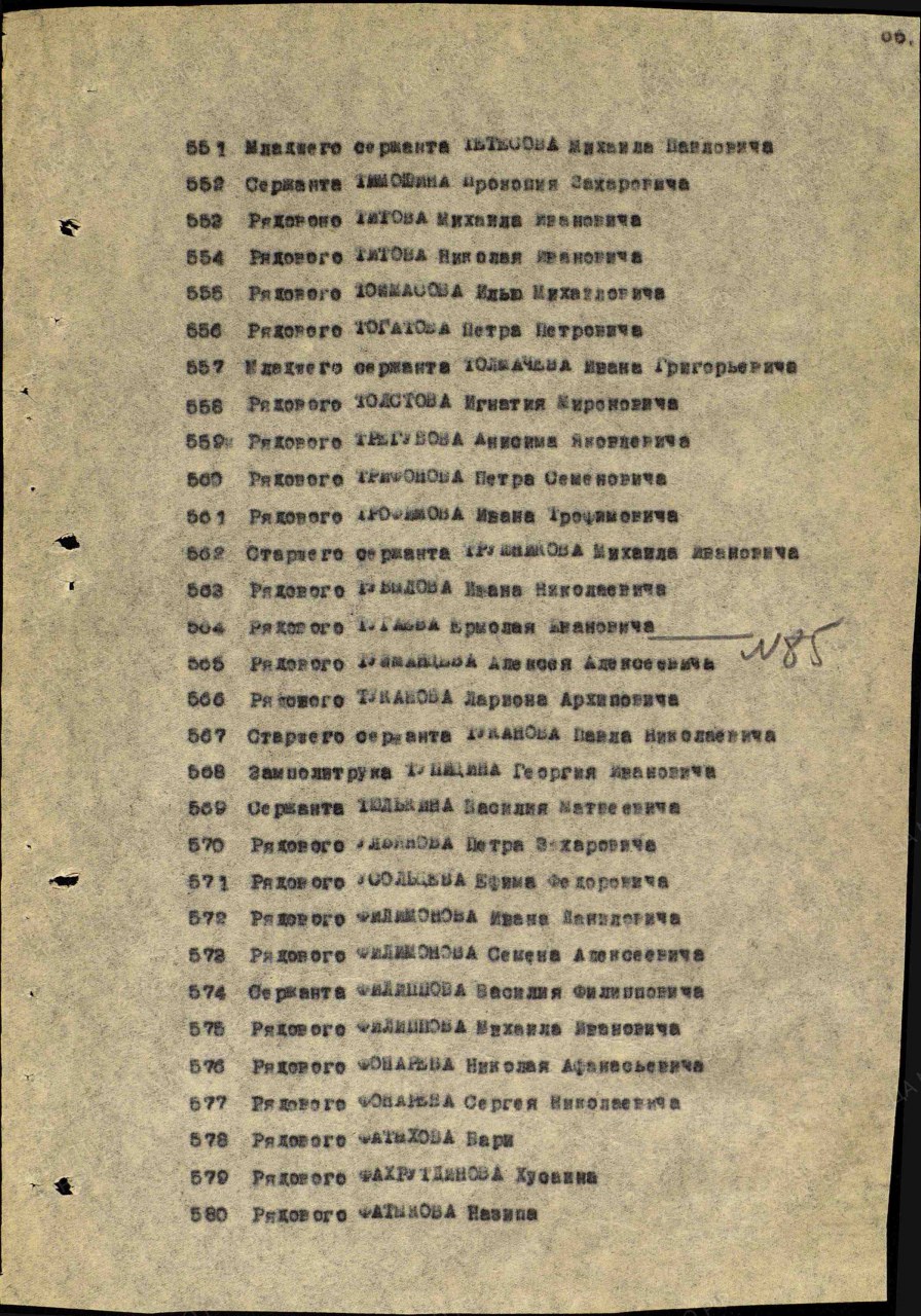 | 39426 | Фонарев Николай Афанасьевич 7 / 382471 | Р-н: Воткинский С/c: Гришановский НП: Захарки | Предприятие: Привет Должность: кладовщик Стаж: с 1935г. | Даты: 13 января 1947г. / 17 апреля 1946г. ЦГА УР: р-620,оп.4,д.839,л.187об,219об. |