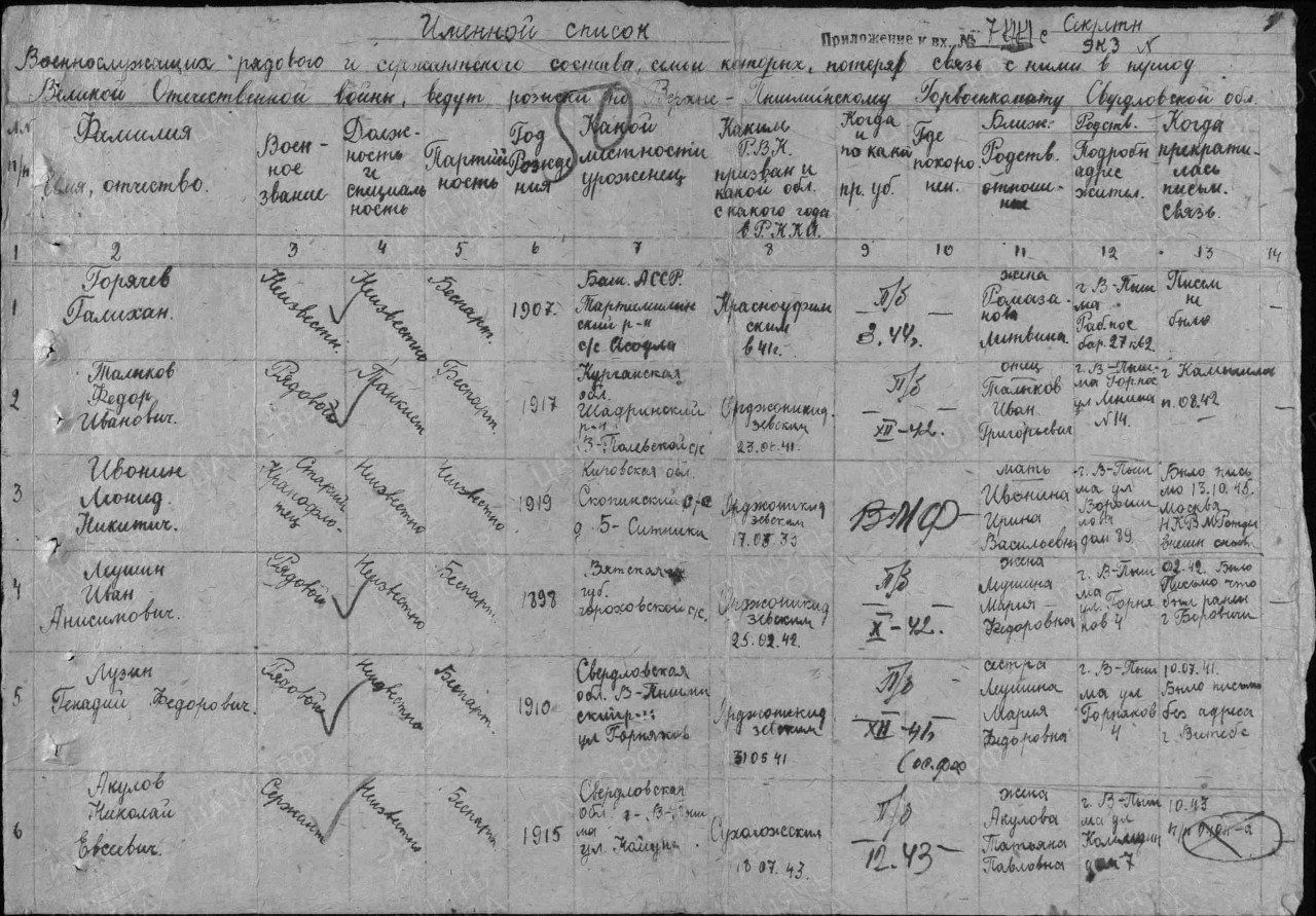 Наименование военкомата: Орджоникидзевский РВК, Свердловская обл., г. Свердловск, Орджоникидзевский р-н