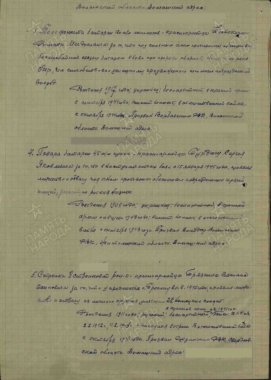 Выбытие из воинской части: 27.11.1944