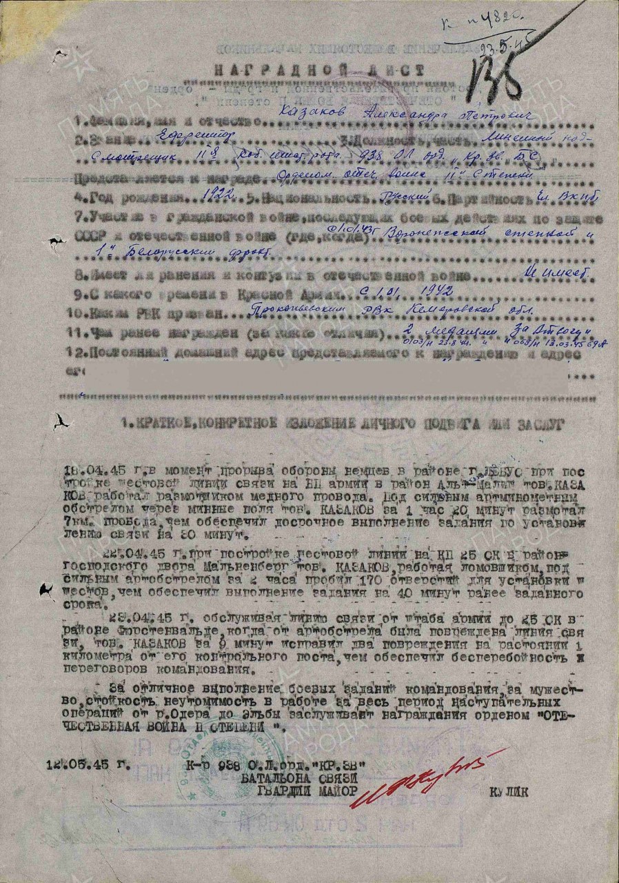 Дата и место призыва: __.01.1942 Прокопьевский РВК, Новосибирская обл., Прокопьевский р-н