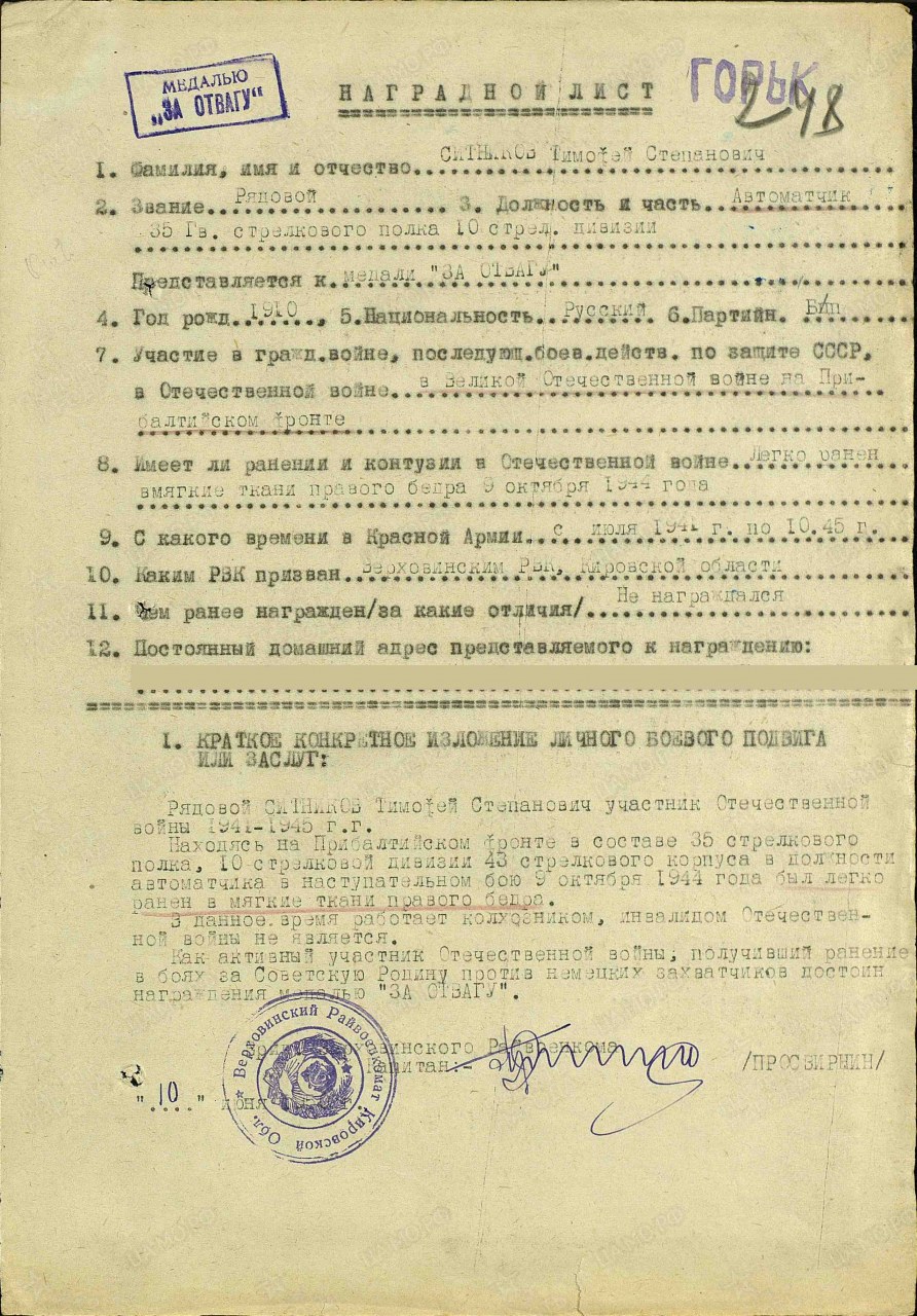 Воинская часть: 35 гв. сп 10 гв. сд.