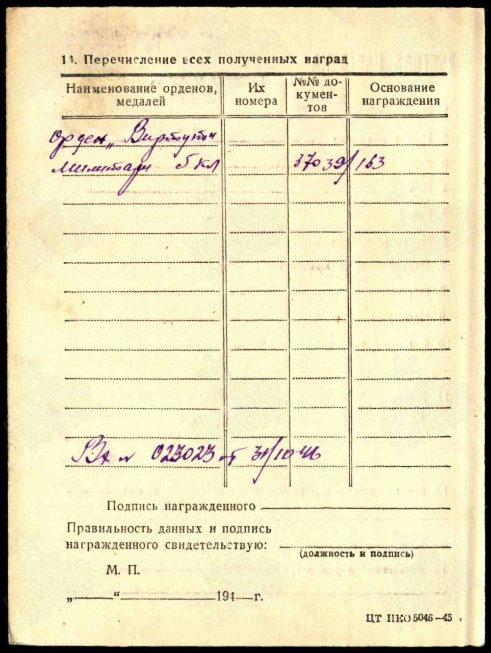 Дата и место призыва: 14.11.1931 Кировский РВК, Кировская обл., Кировский р-н
