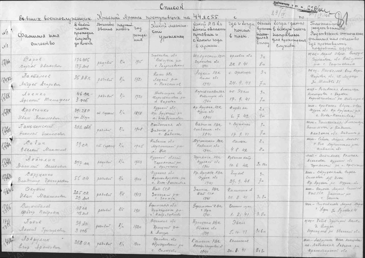 Воинская часть 44 Армейский сборно-Пересыльный пункт Дата прибытия 29.04 - 30.04.1945