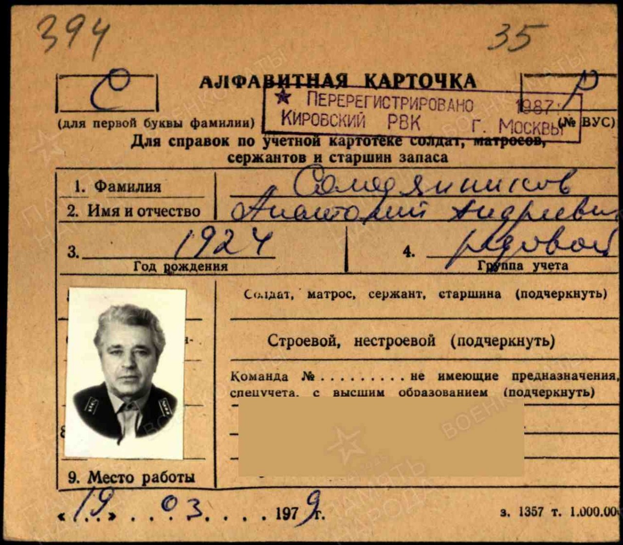 Дата и место призыва: Верховинский РВК, Кировская обл., Верховинский р-н