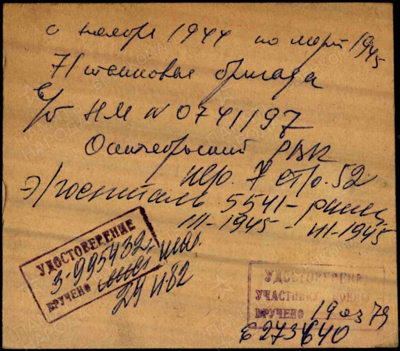 Дата выбытия: __.03.1945