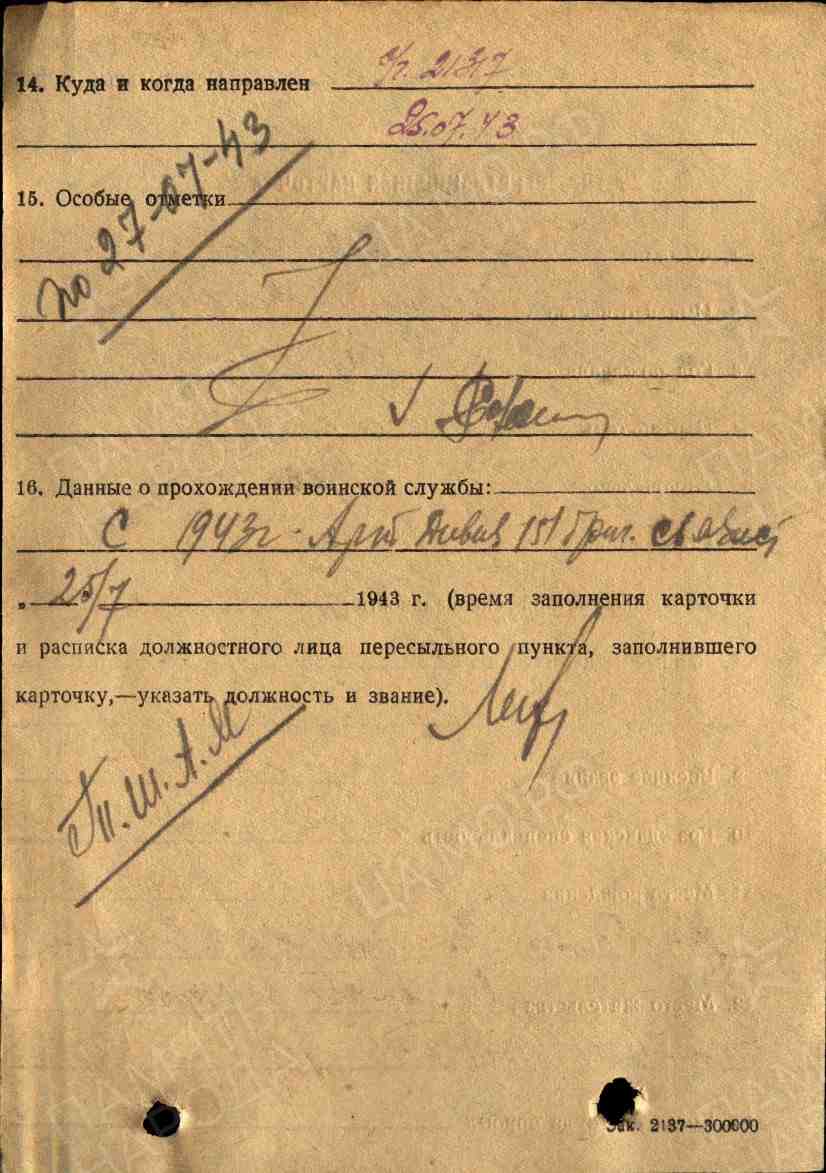 Выбытие из воинской части: 25.07.1943