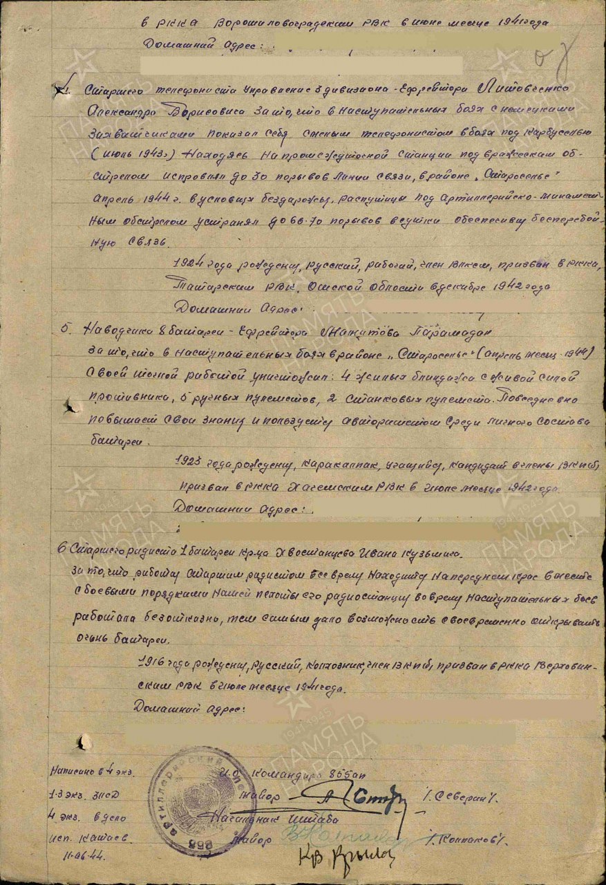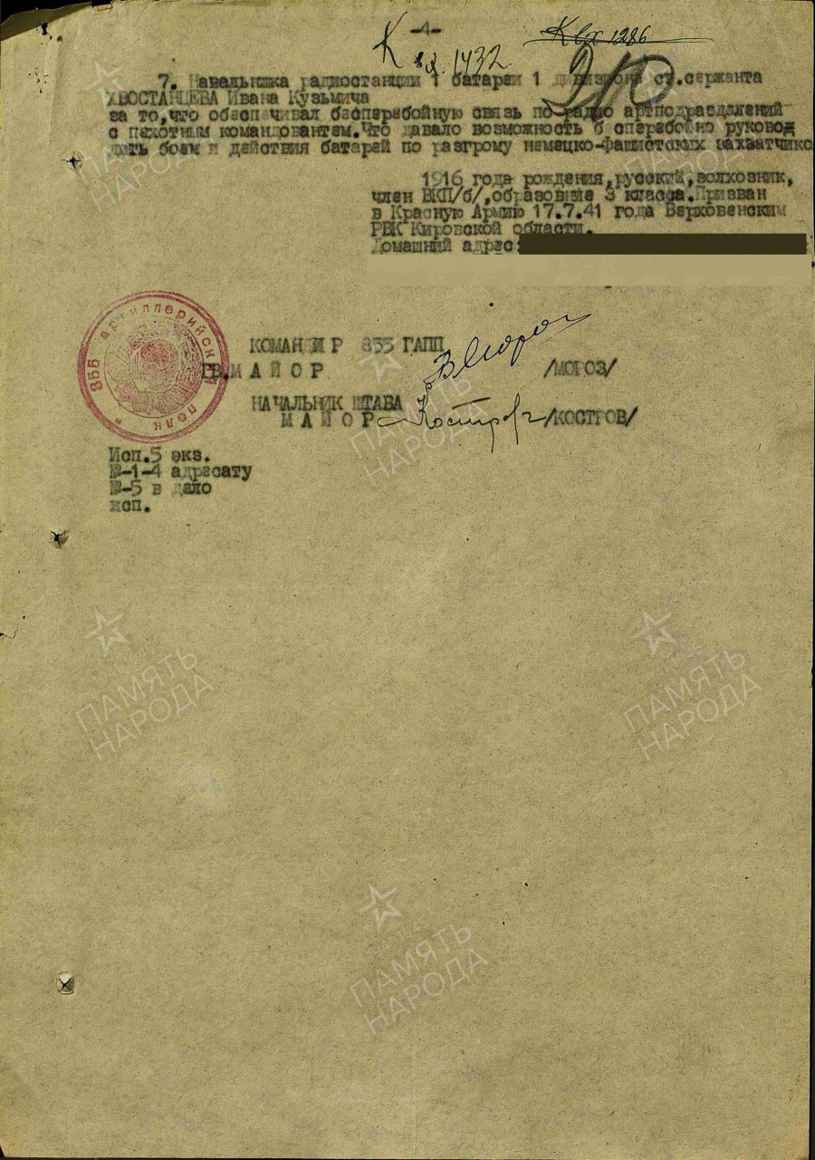 Дата и место призыва: __.07.1941 Верховинский РВК, Кировская обл., Верховинский р-н