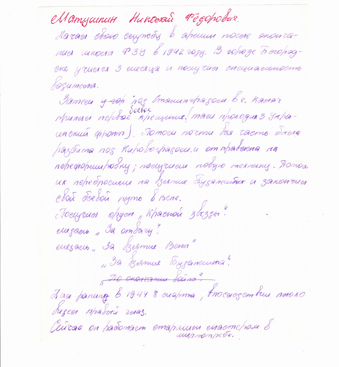 Матушкин Николай Федорович Воспоминания // Музей Вахрушевской школы.