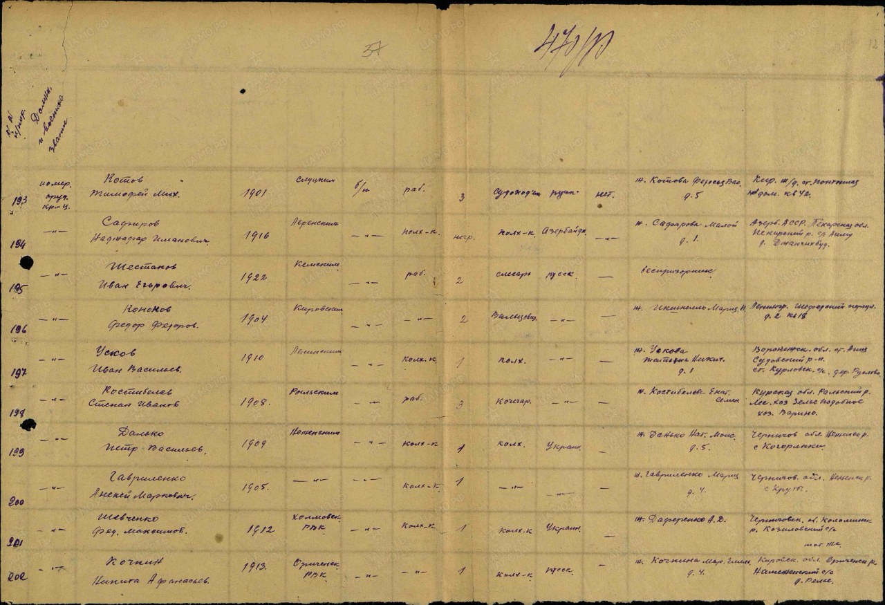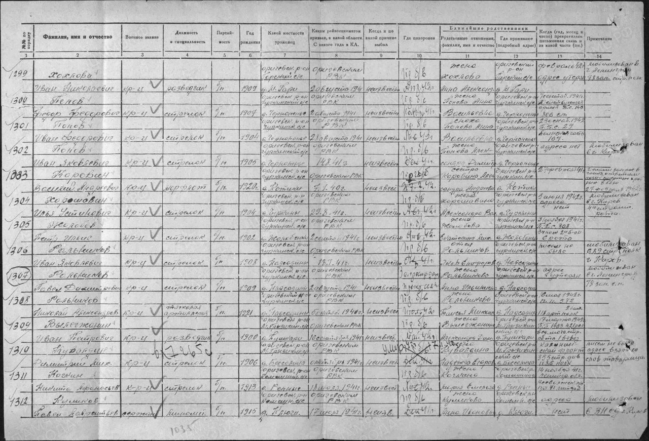 | 4308355028 | КОЧКИН Никита Афанасьевич | 1913 г. р., уроженец Советского района, Жидельского с/с, призван Оричевским РВК, красноармеец, стрелок 71 п-я, литер 8, в январе 1942 г. пропал без вести. | Кировская область, Оричевский район |