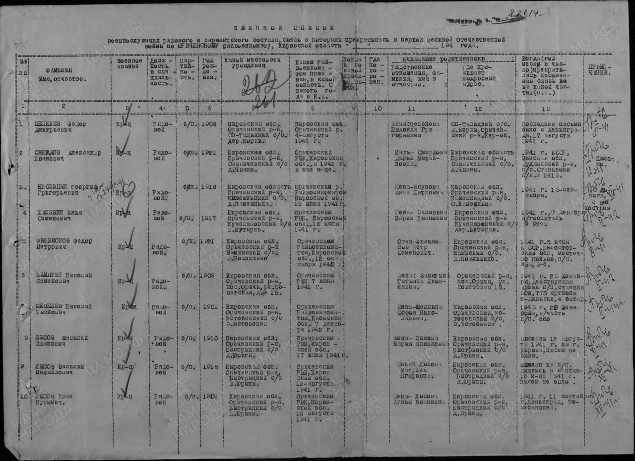 | 4308467009 | ХАЛЯВИН Илья Семенович | 1917 г. р., д. Бутырки Кучелаповского с/с, красноармеец, рядовой, в феврале 1942 г. пропал без вести. | Кировская область, Оричевский район |