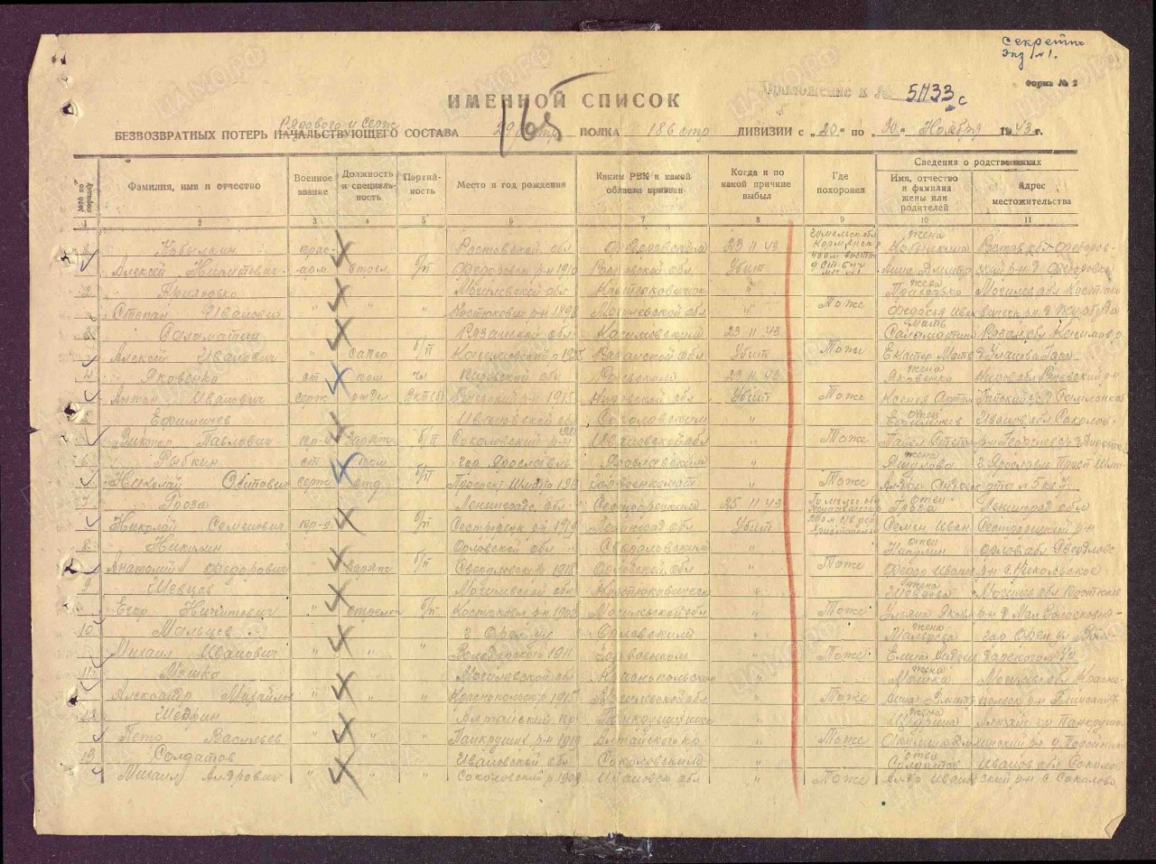 Списки воинов, погибших и пропавших без вести на фронтах Великой Отечественной войны