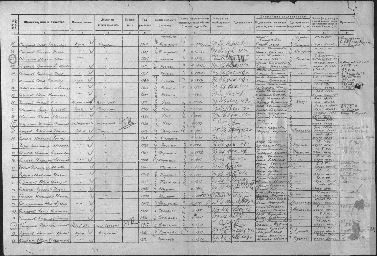| 4308485016 | ШИРОНИН Александр Александрович | 1914 г. р., д. Угор, Вальковского с/с, красноармеец, стрелок, 689 сп, г. Киров, в феврале 1942 г. пропал без вести. | Кировская область, Оричевский район | |||
